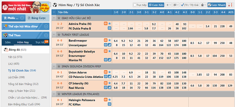 Kèo tỷ số chính xác