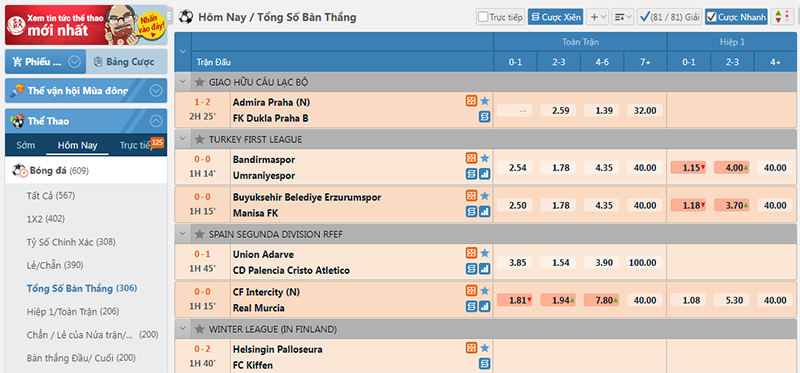 Kèo tổng số bàn thắng