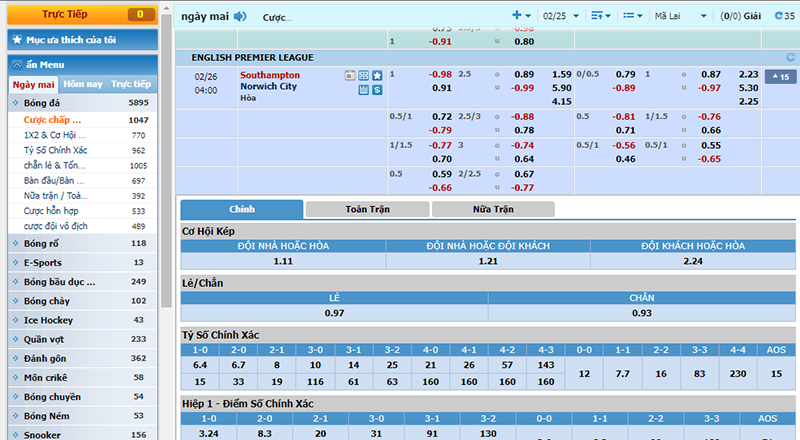 Mặt khác, các sảnh cược thể thao uy tín mà bạn tham gia. Họ sẽ trình bày bảng tỷ lệ kèo trận đấu khá rõ ràng và cụ thể. Các bạn sẽ có thể chủ đọc lọc theo từng giải đấu, theo ngày hoặc theo từng nhóm kèo khác nhau.