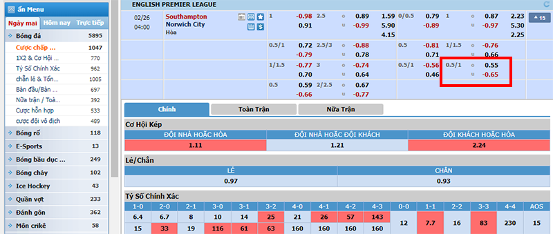 Tỷ lệ O/U là 0.25 bàn, 1.25 bàn, 2.25 bàn…