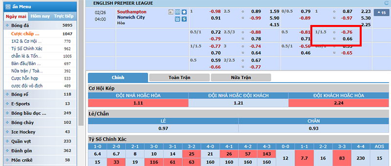 Tỷ lệ O/U là 0.75 bàn, 1.75 bàn, 2.75 bàn…