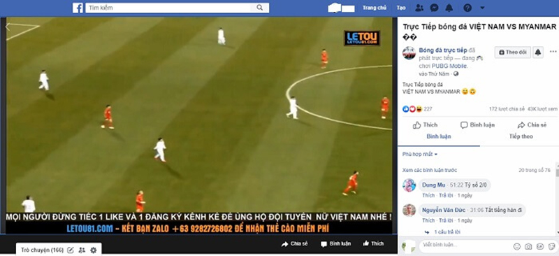 Xem bóng đá trực tuyến qua kênh mạng xã hội