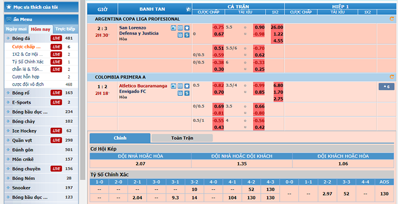 Đặc biệt, bảng tỷ lệ kèo cược luôn được cập nhật thống số liên tục theo thời gian thực. Đối với một người chuyên soi kèo hoặc nhận định dự đoán kèo bóng đá. Vấn đề này luôn rất cần thiết và khá quan trọng.