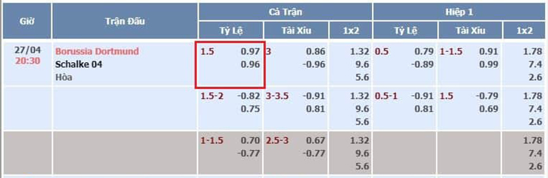Nếu gặp trận đấu mà bạn muốn xuống tiền. Đồng thời, phía nhà cái cũng đưa ra tỷ lệ kèo 1 1/2 kèm thêm một số tỷ lệ khác. Lúc này, bạn cần phải hiểu được cách đọc tỷ lệ kèo chấp 1 1/2 trái.