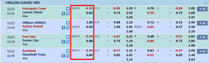 • Nếu 2 đội có tỷ số hòa nhau => Cược kèo dưới sẽ ăn được nửa tiền, còn nếu nằm kèo trên thì coi như mất hết.