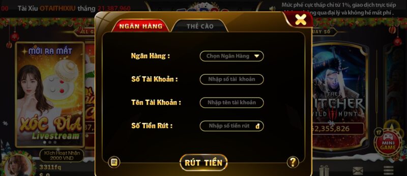 Đối với rút tiền, người chơi có thể lựa chọn giữa 2 hình thức :