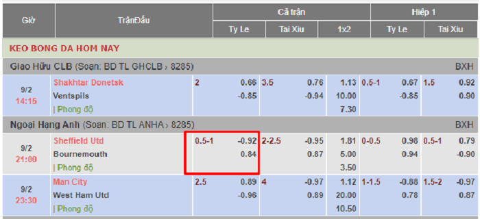 • Nếu tổng số bàn thắng bằng 1 thì người chọn cửa tài sẽ thắng nửa tiền, cửa xỉu thua nửa tiền.