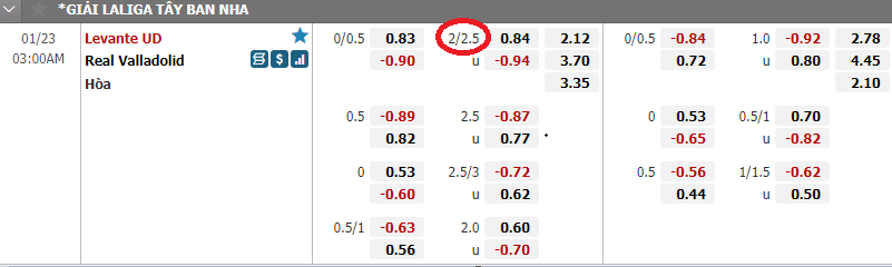 • Nếu tổng số bàn thắng dưới 2 bàn thì người chọn cửa xỉu ăn tất, cửa tài mất sạch.
